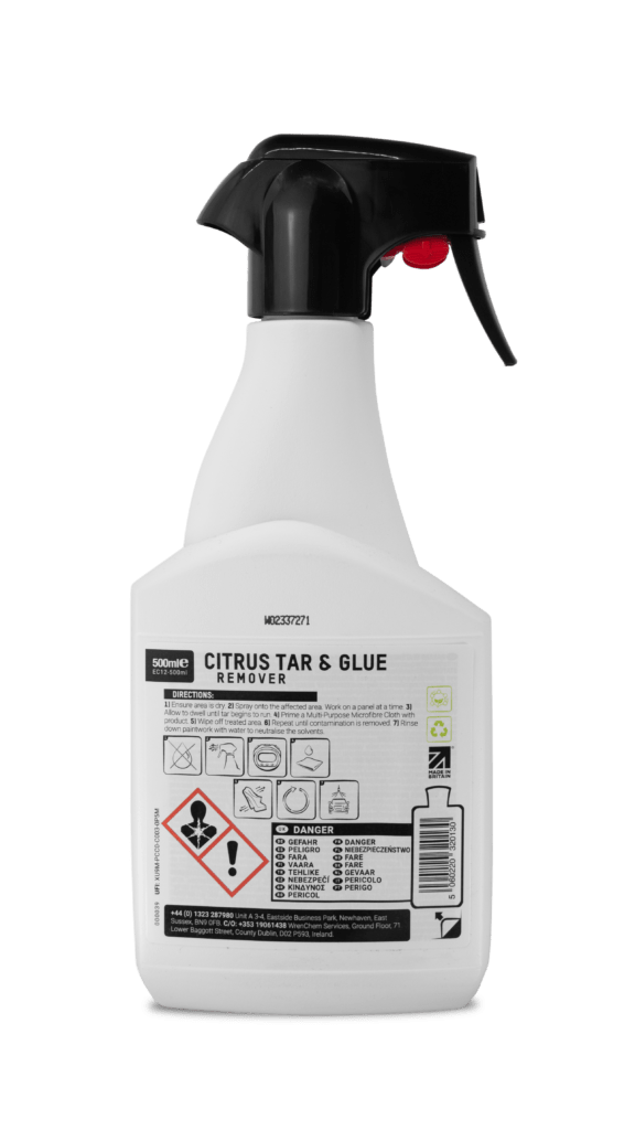 Le "Citrus TAR & glue remover" de chez Valet Pro est formulé pour éliminer efficacement les résidus de goudron, de colle et autres substances collantes sur les surfaces dures et peintes, ce nettoyant associe la puissance d’un solvant aliphatique raffiné à l’action naturelle de l’huile d’agrumes.
